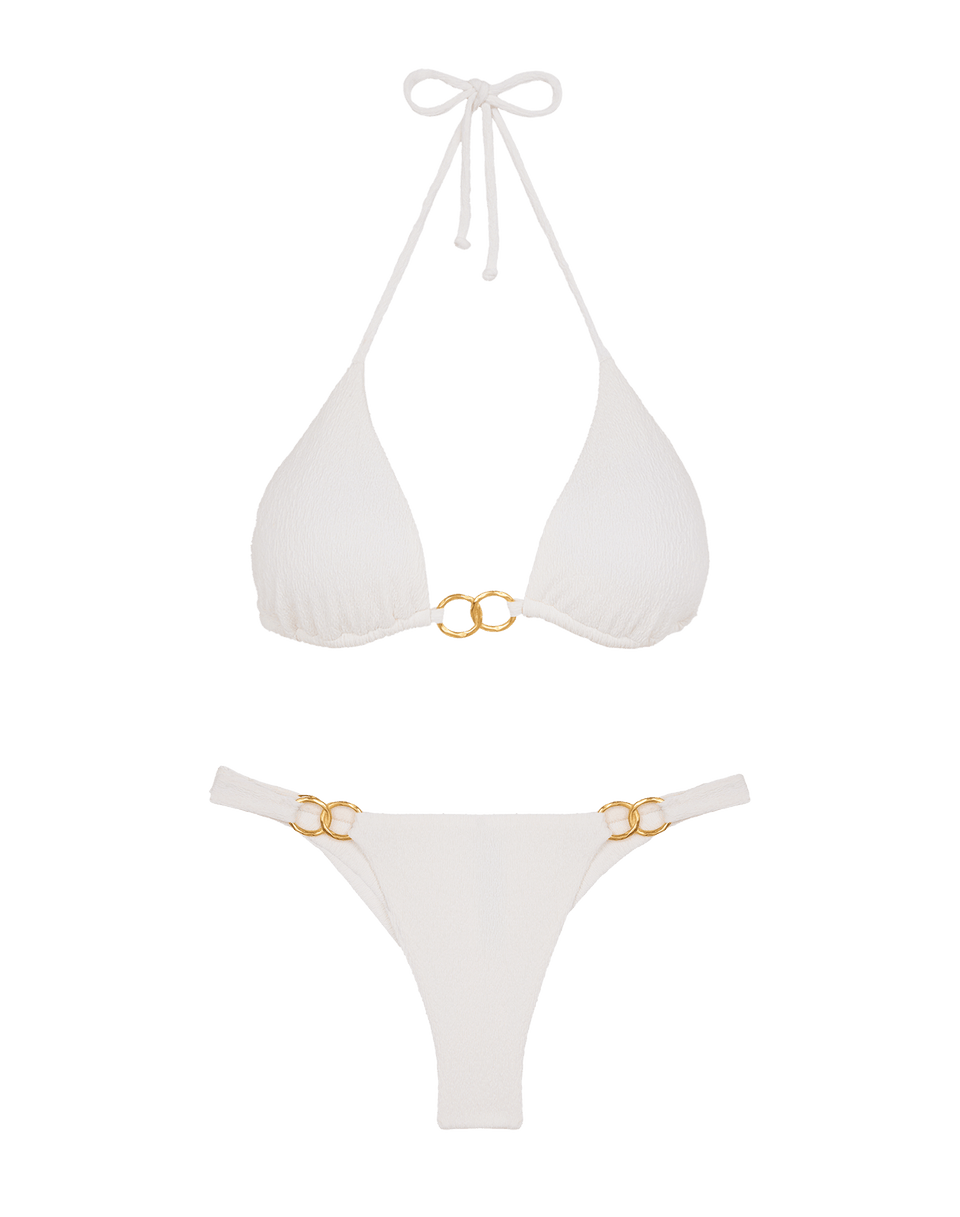 By designing women's swimwear, our goal is to empower women to travel the world in style. At ViX you can mix and match your favorite triangle bikini top with your choice of cheeky, full or Brazilian swim bottoms to create the perfect fit. Whether you're shopping for your next warm-weather vacation or a summer day at the pool, find a triangle bikini top that suits your personality and style and that you'll want to wear for many years to come. Add a triangle bikini top to your swimwear collection. Shop our collection of uniquely made triangle bathing suits with eye catching colors and unexpected details that are in line with the latest design trends, revolutionizing the once-monotonous designs of the classic triangle bikini.